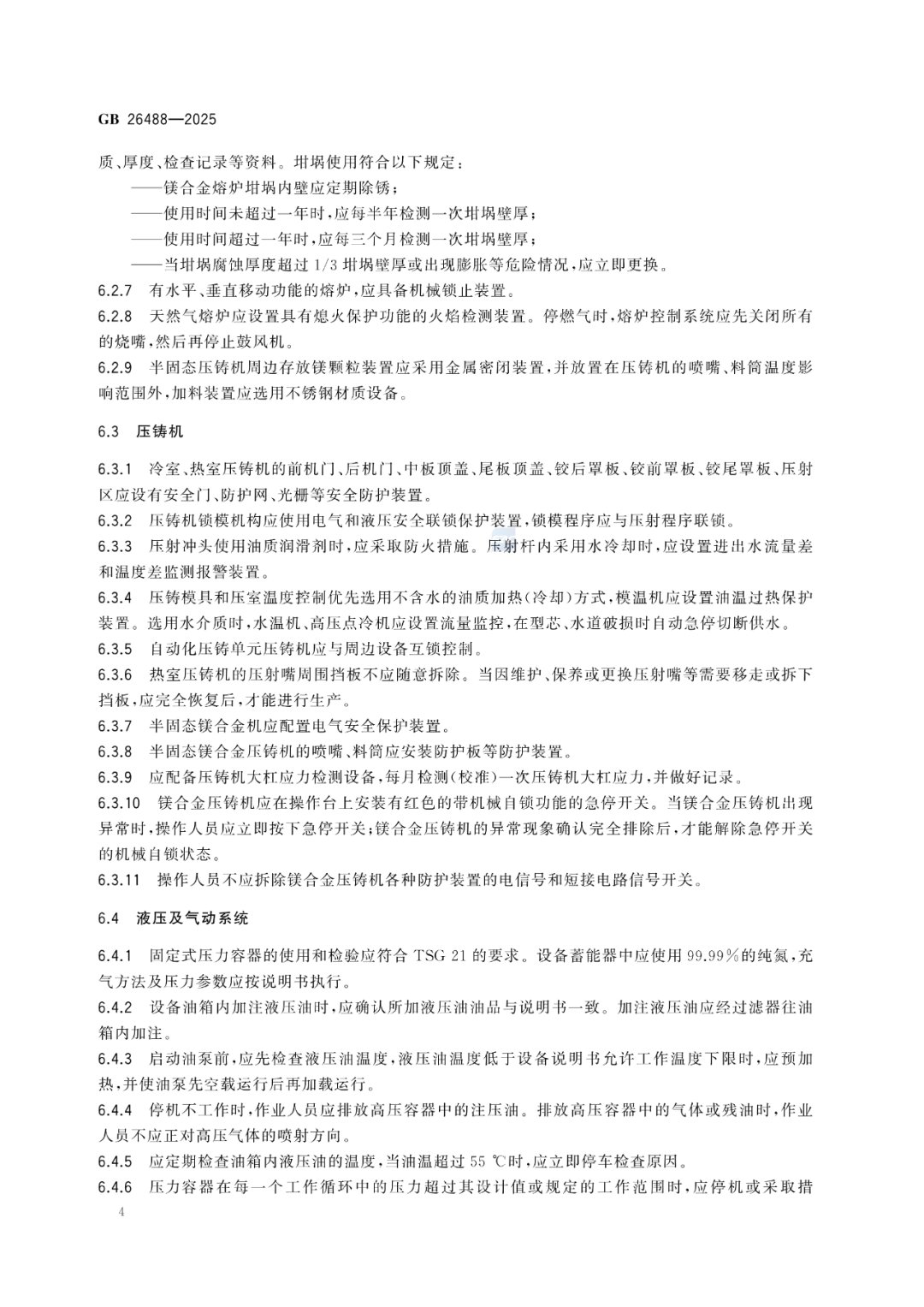 对比 2011 年版旧标,GB26488-2025 的修订并非简单文字调整,而是紧扣镁合金压铸技术发展的 “针对性升级”,所有变化均围绕 “解决实际安全风险” 展开,核心亮点可总结为三点: