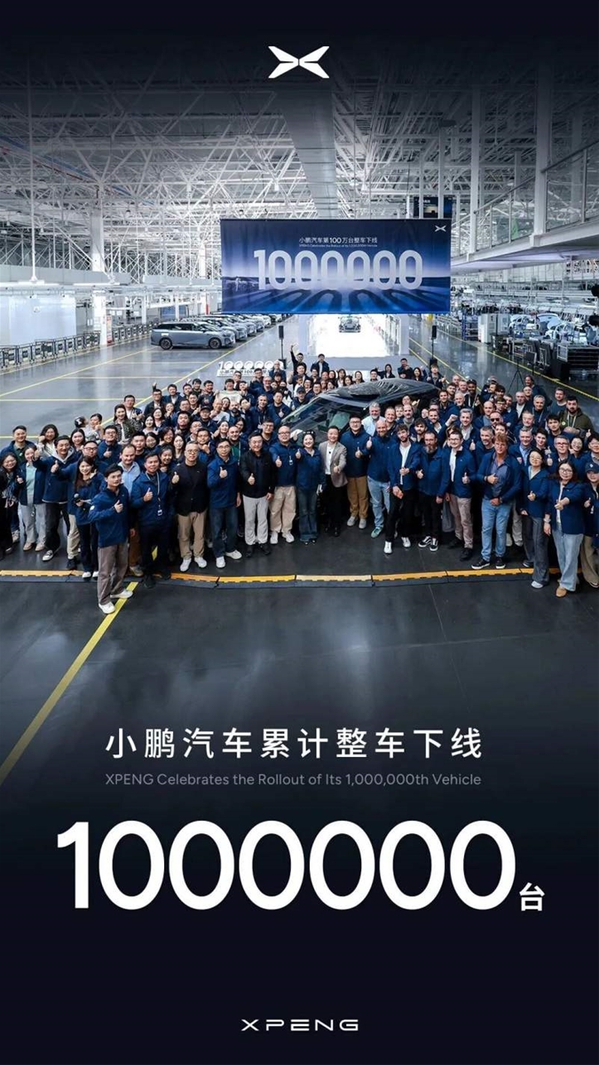 11月21日,小鹏汽车在广州黄埔区知识城现代化工厂内举行第100万辆整车下线暨首批X9超级增程车主交付仪式,成为首家达成百万辆量产规模的纯电新势力车企;